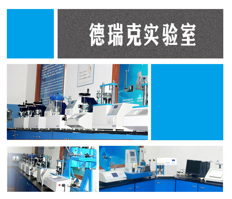 德瑞克除了拥有完善的科研、生产团队和标准车间外,还拥有一个国际化的标准实验室。实验室总面积约200m2,配备了纸品包装检测仪器60余台,总价值超过1000万元,涵盖抗压、强度、拉力、耐破、耐折、厚度、撕裂、柔软度、戳穿、平滑度、剥离、水分、压缩、热封、密封等多类检测项目。