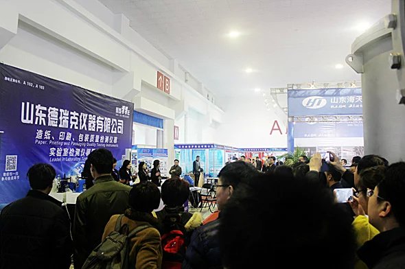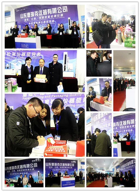 山东(国际)制浆造纸技术及装备展览会已成功举办十年,展会展出面积12000平方米,参展商约400余家,专业观众达15000余人,山东德瑞克携2015新上市升级版产品亮相本次展会,其中DRK101A拉力试验机采用进口直流伺服电机和滚珠丝杆构造性能更稳定, 中英文自由切换配合智能化 触摸屏操作更便捷,且实时显示曲线和数据。此外,平滑度仪,耐破度仪,耐折度仪,撕裂度仪,纸箱抗压机等十余种新型检测仪器也是山东德瑞克本次展会展出的得意之作,美观,稳定,智能化,适中的价格,深得与会客户的一致认可与好评。