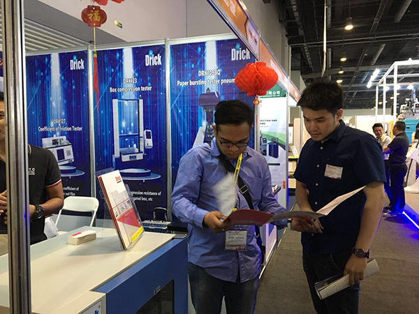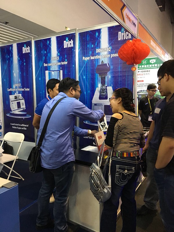 展会上我们向广大展商和观众展示了我们的主打产品:DRK127摩擦系数仪、DRK123抗压机、DRK101万能拉力机、DRK109耐破度仪、DRK113压缩仪、DRK133热封仪等。产品的实用性和性价比,吸引了一波又一波的参观人员驻足了解。