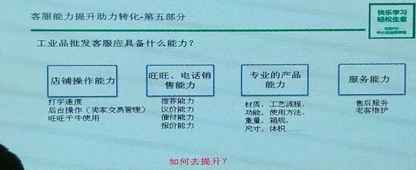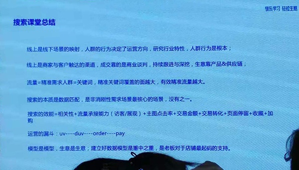 本次学习,对我们帮助最大的课程是《搜索之道》和《客户运营提升转化》。后期的工作过程中,我们要努力学会分析数据、选择合适的关键词、做好店铺的排版和产品信息的主图详情页等等,以提高我们产品的展现和点击,最终目的是提高点击转化率和支付转化率!