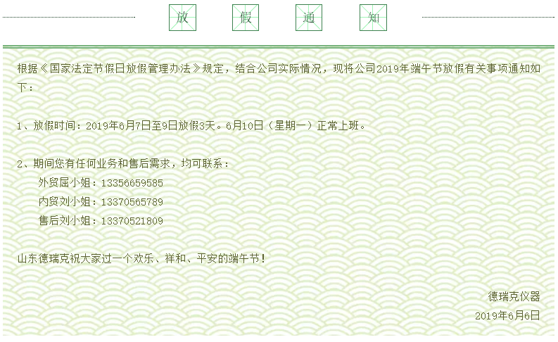 放假通知 ‖ 山东德瑞克祝大家过一个快乐、祥和、平安的端午节!
